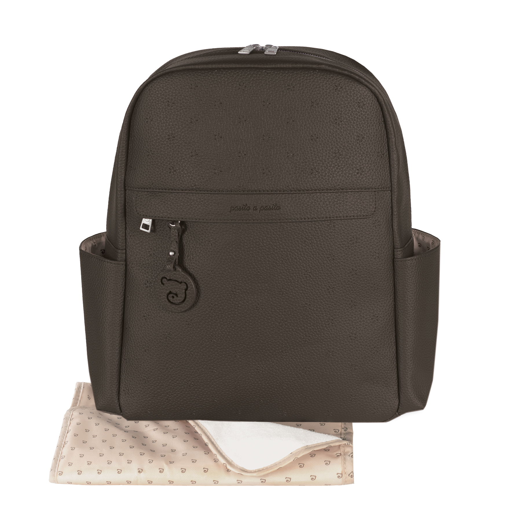 London Brown (maternity) ранецот од Pasito a Pasito е модерен и практичен избор за секоја мајка. Со елегантен дизајн од кафена текстурирана еко-кожа, удобни ремени и паметна организација, овозможува лесно носење на сите бебешки работи. Вклучува подлога за пресоблекување и ремени за количка – идеален за секојдневие и патувања.