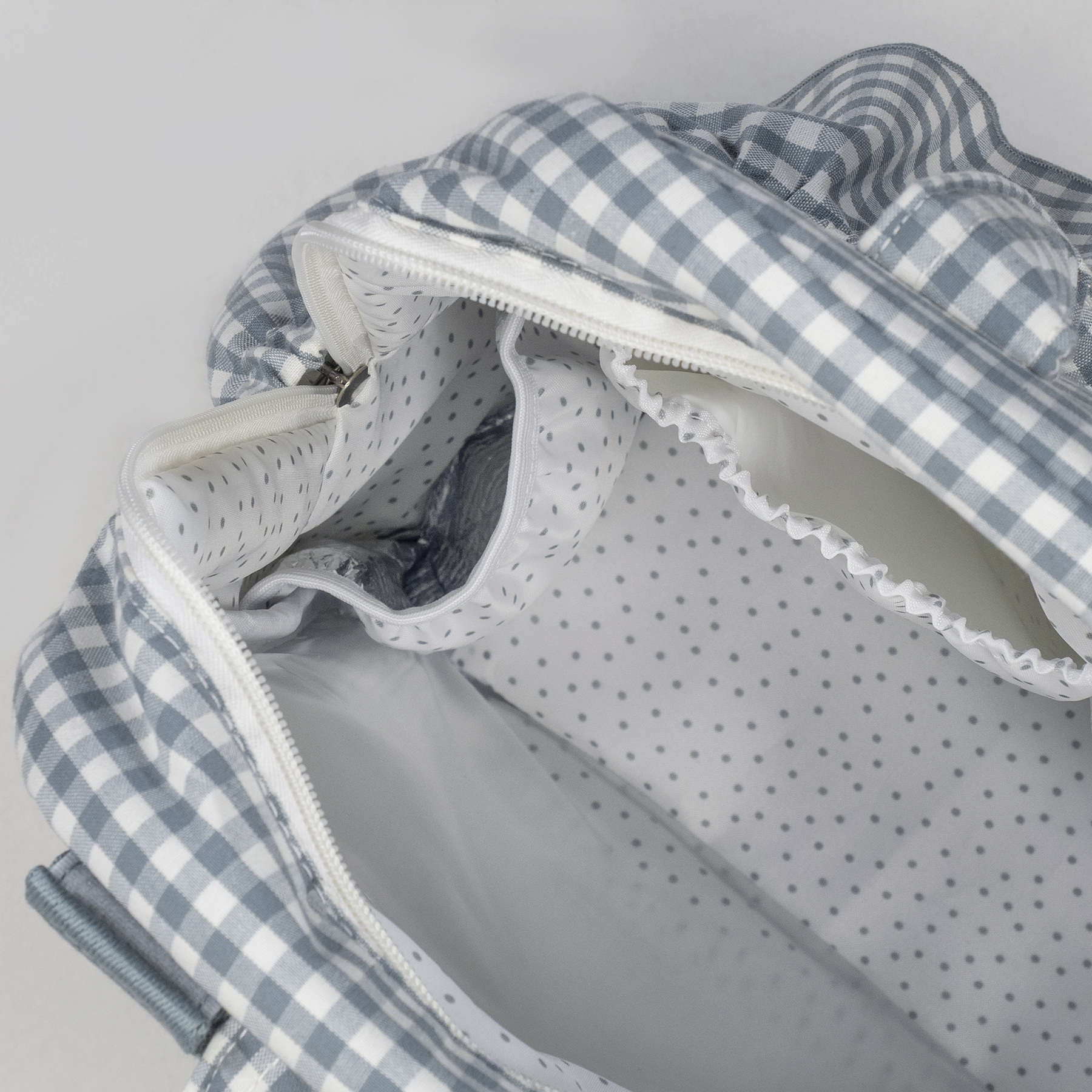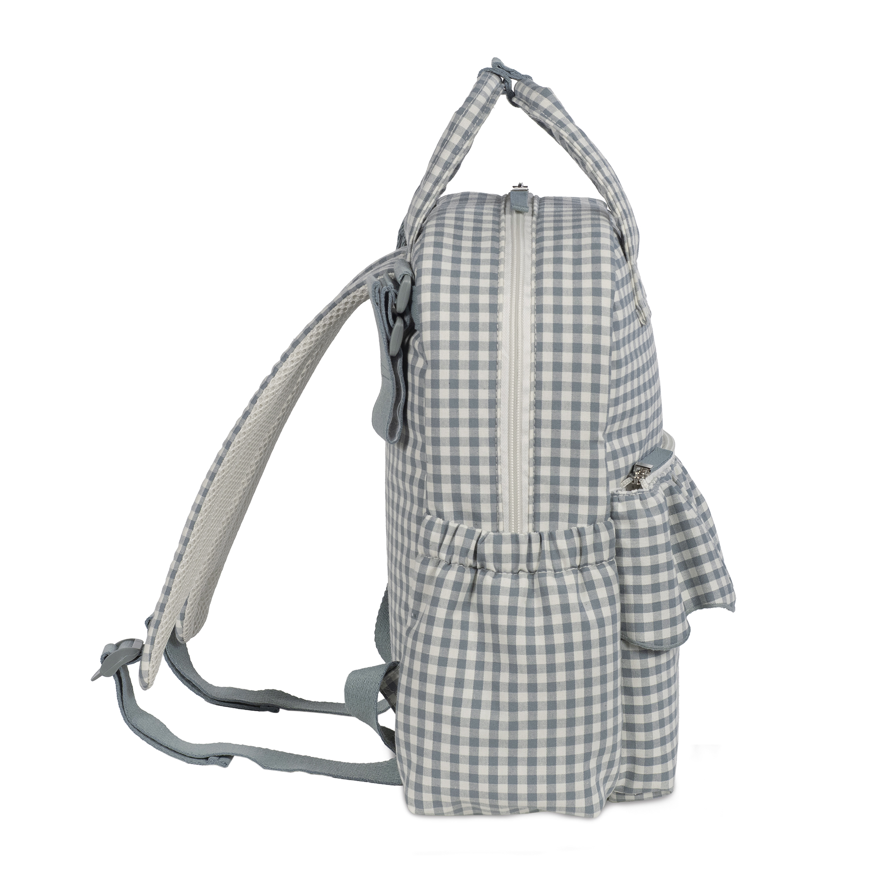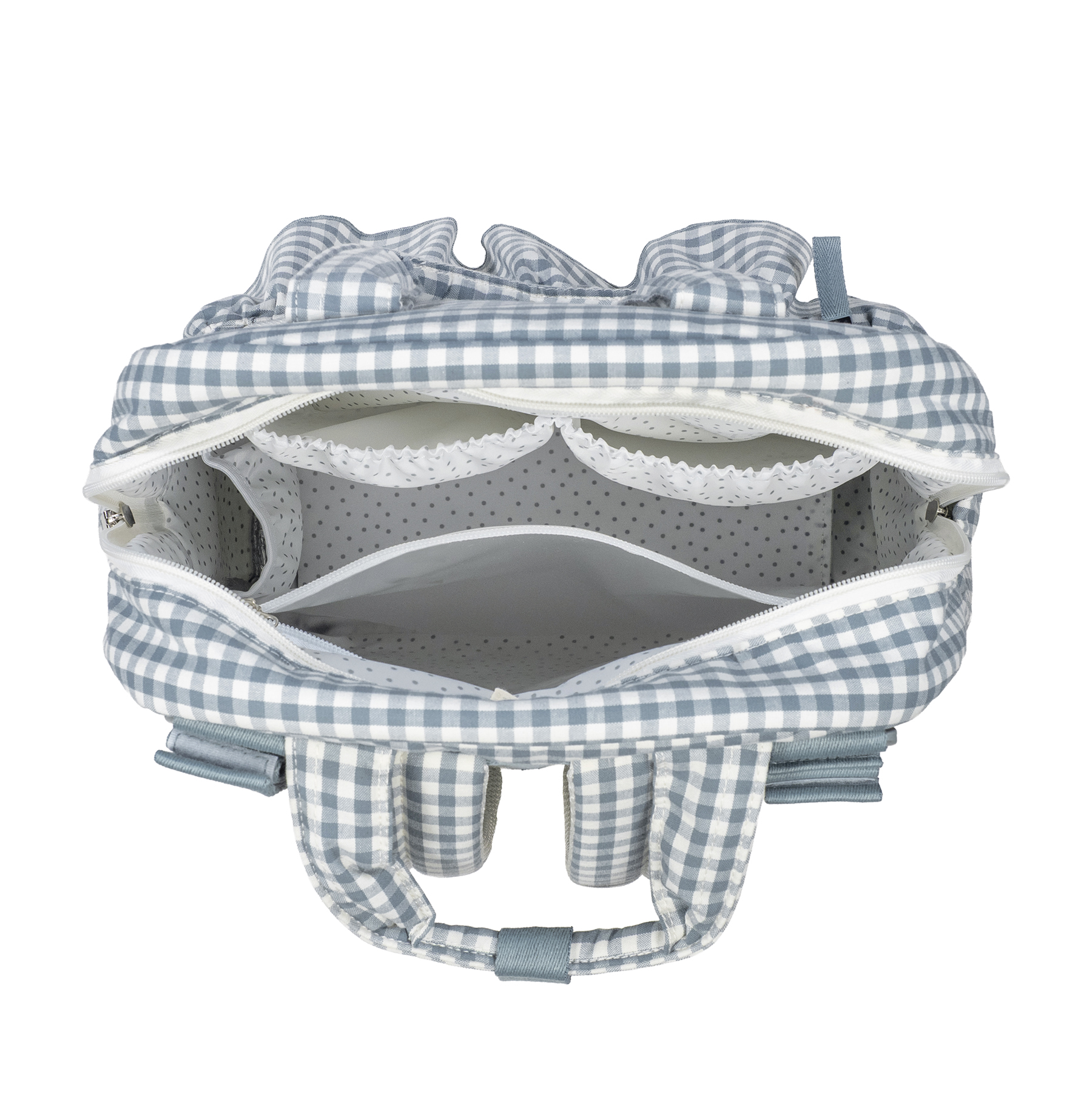 Ранецот има 2 прилагодливи кратки ремени за лесно закачување на количка, рачки за носење во рака и подлоги за раменици за удобно носење на грб. Висок квалитет и стил, лесен за чистење рачно или во машина на 30°C.