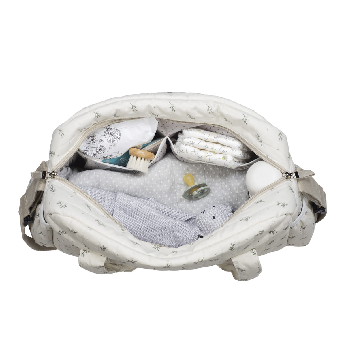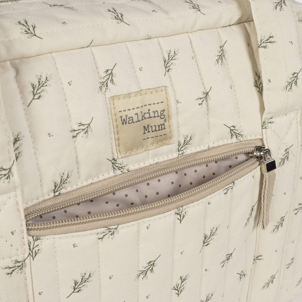 Торбата Mimosa со цветен дезен во розова или зелена боја е лесна, издржлива и пространа – совршена за носење сè што ви е потребно за прошетки со вашето бебе.